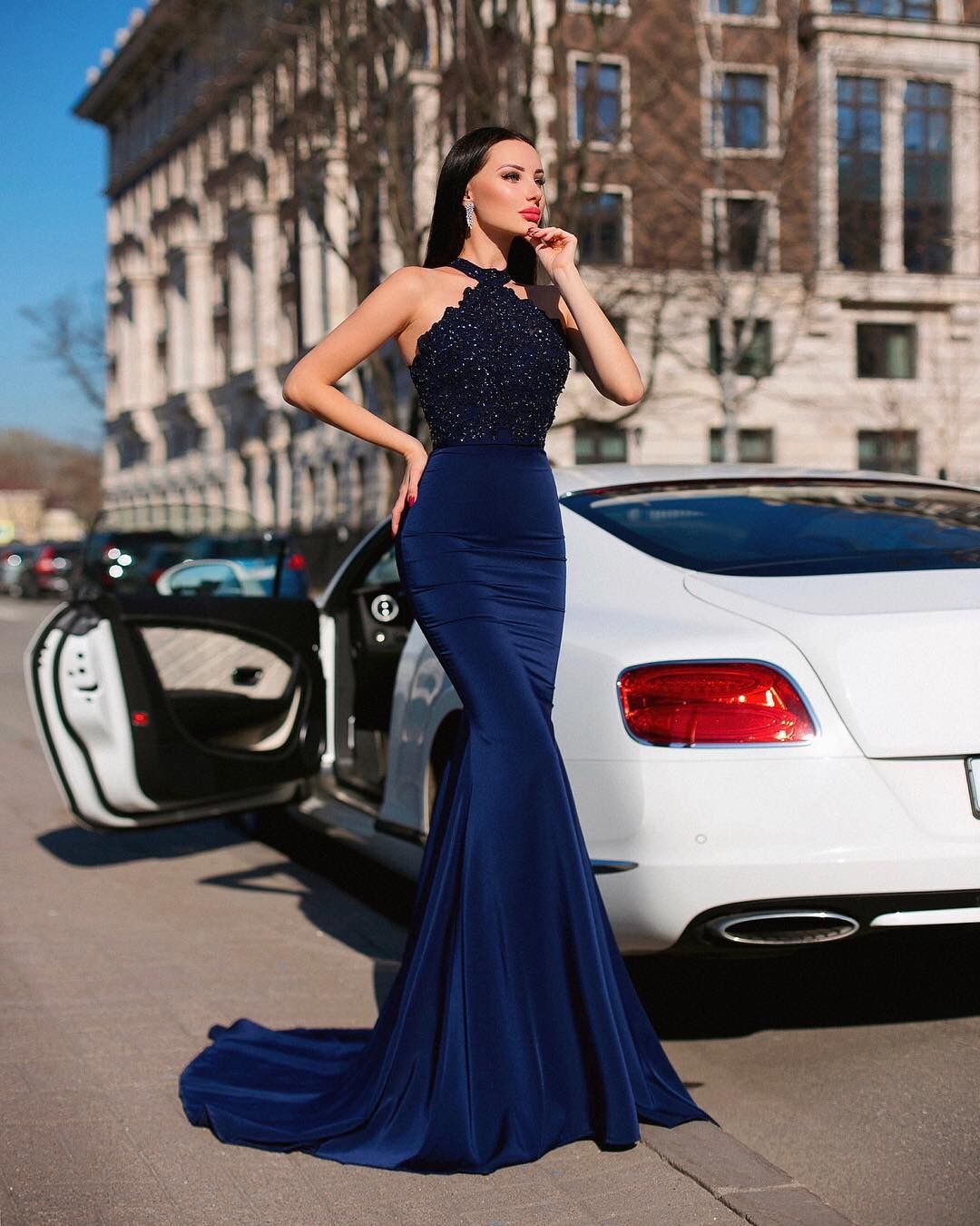 LP1315,Classic Mermaid Halter Navy Blue Long Prom/Evening Dress Appliques