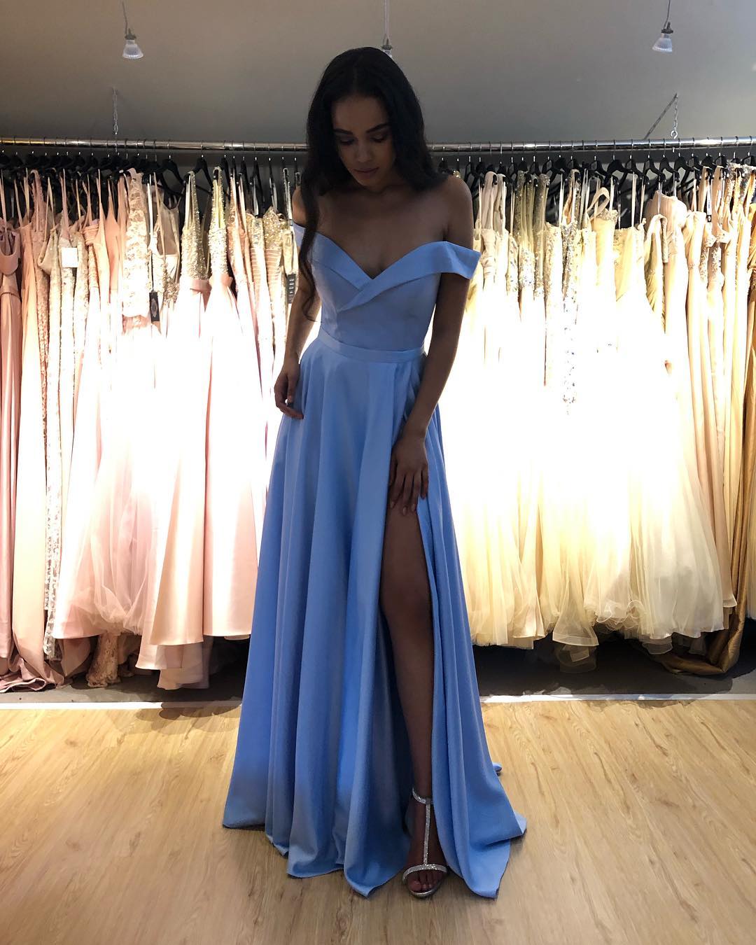 LP1451,Off Shoulder Prom Dress,Long Evening Dress,Prom Gown with Front Slit