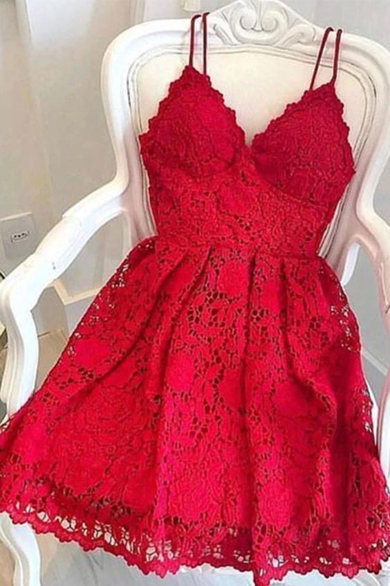 LP1208,Cute Red Short Homecoming Dress Lace Party Gowns