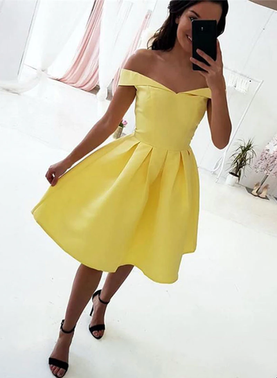 LP1431,Cute A Line Off the Shoulder Yellow Short Homecoming Party Dresses
