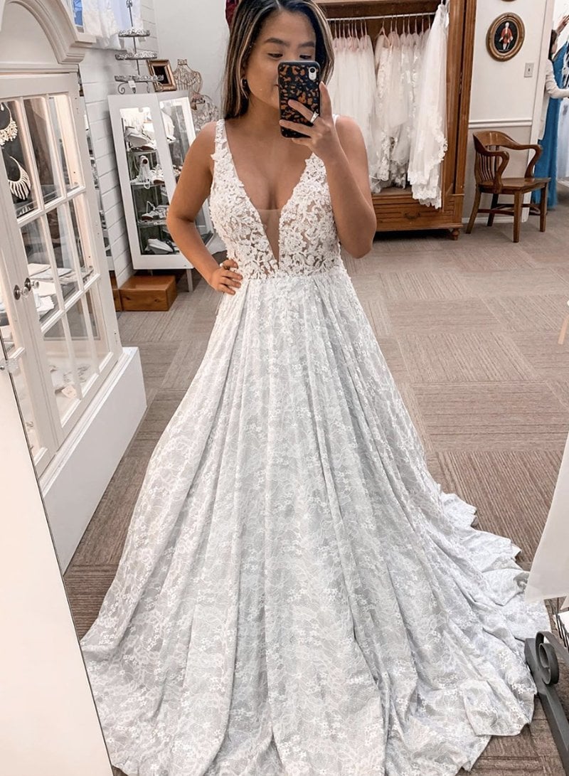 LP1383,White V Neck Long A Line Lace Dress Formal Dress Prom Dress