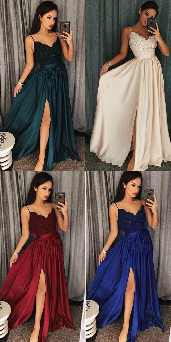 LP1129,Spaghetti Straps Prom Dress,V-Neck Evening Dress,Lace Top Prom Gown
