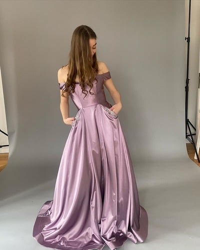 LP1305,Gorgeous A Line Off the Shoulder Purple/Navy Long Prom/Evening Dress