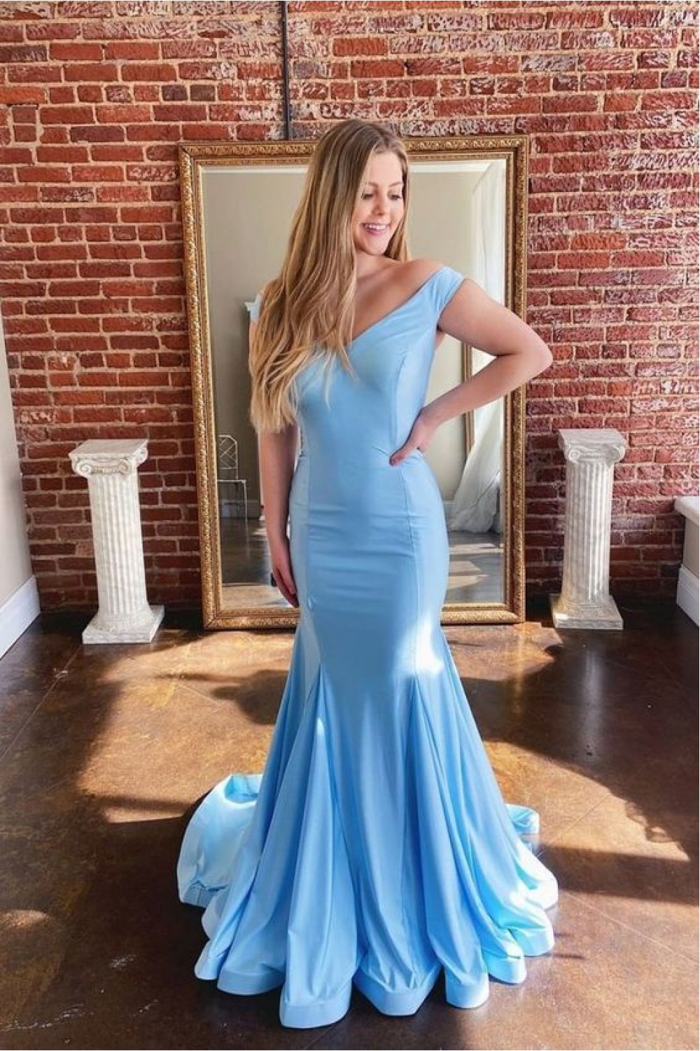 LP1380,Blue Satin V Neck Long Fitted Prom Dress Mermaid Dress Evening Dress