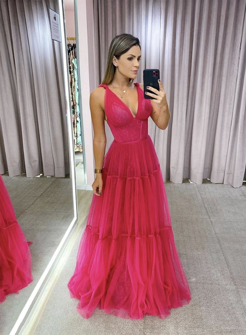 LP1389,Cheap Tulle A line Prom Dresses,Sexy V neck Long Evening Dress