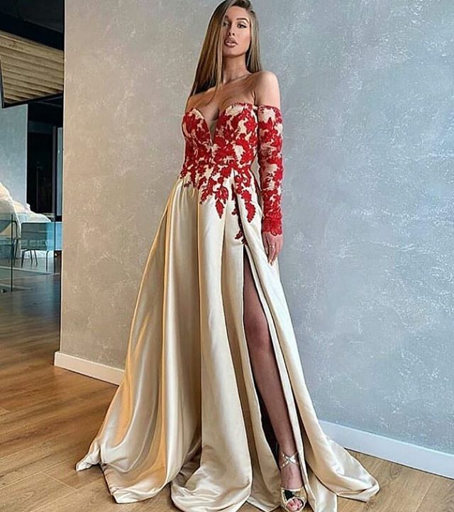 LP1395,Sweetheart Champagne Satin Sexy Evening Dress Long Sleeve Formal Dress