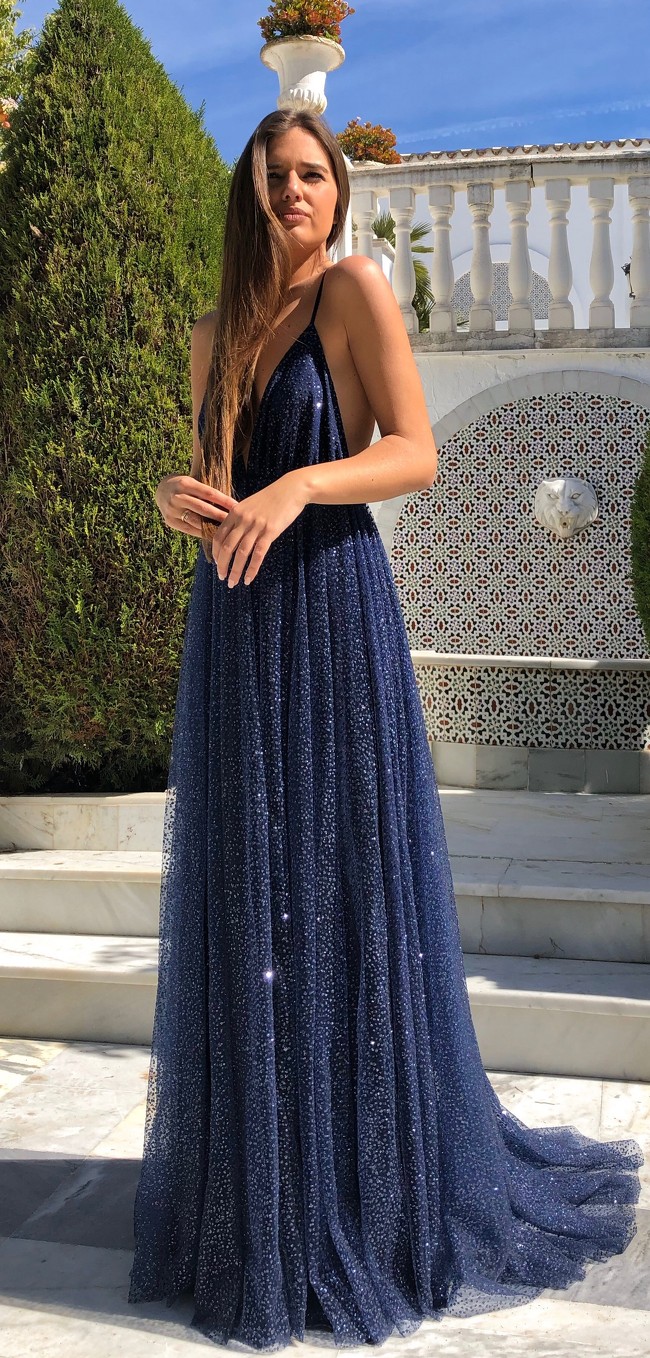 LP1452,Bespoke navy a-line sparkly deep v-neck strapless tulle for a glamorous ball gown