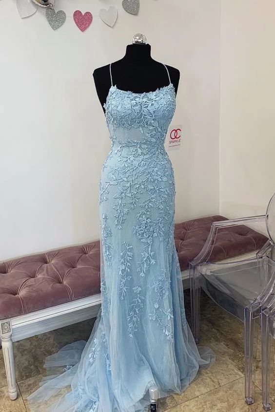 LP1454,Gorgeous Straps Mermaid Light Sky Blue Prom Dresses,2021 Formal Dresses